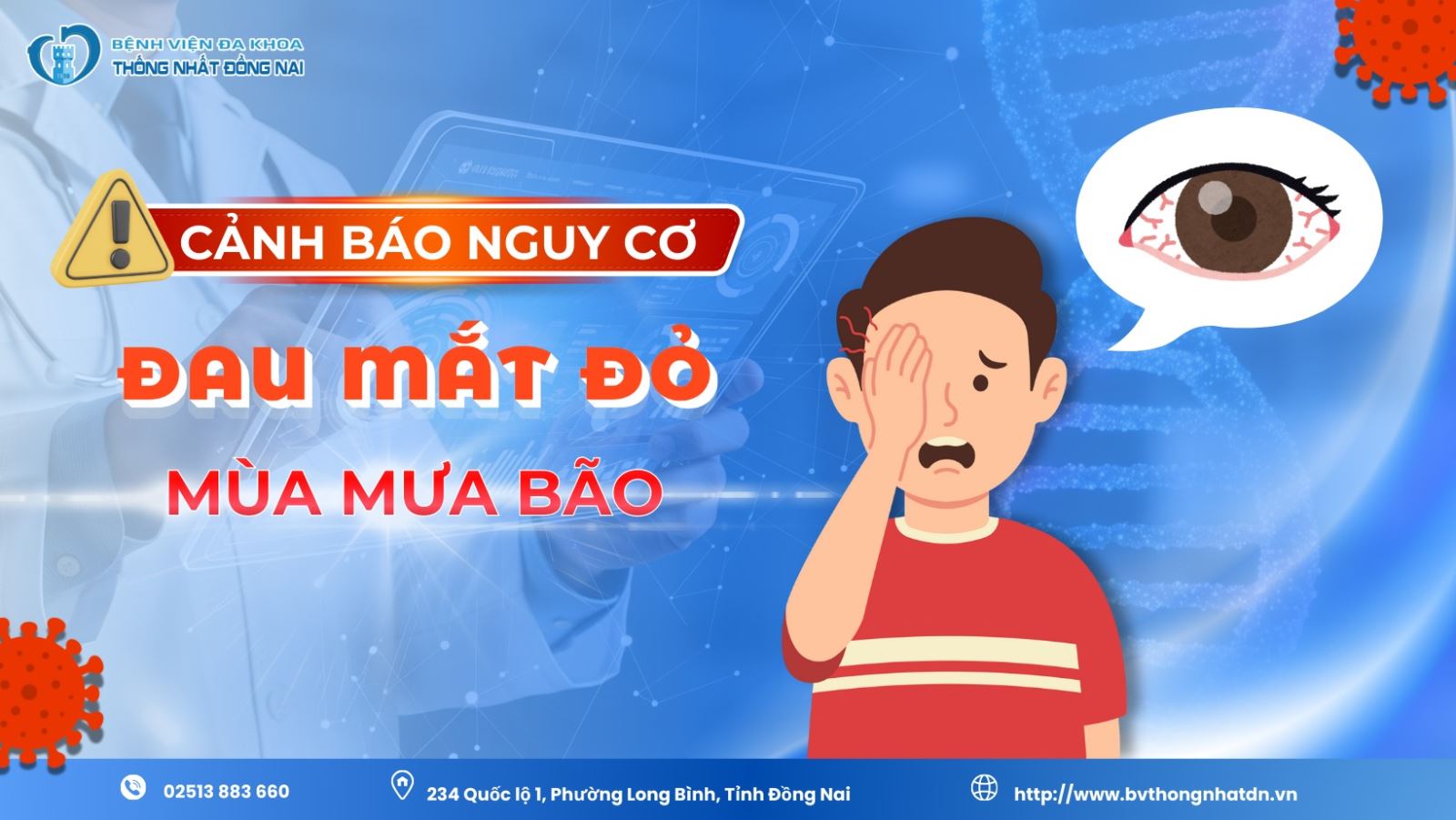 Mùa mưa bão là thời điểm đau mắt đỏ (viêm kết mạc) dễ bùng phát do thời tiết ẩm, vi khuẩn – virus phát triển mạnh và lây lan nhanh trong cộng đồng.