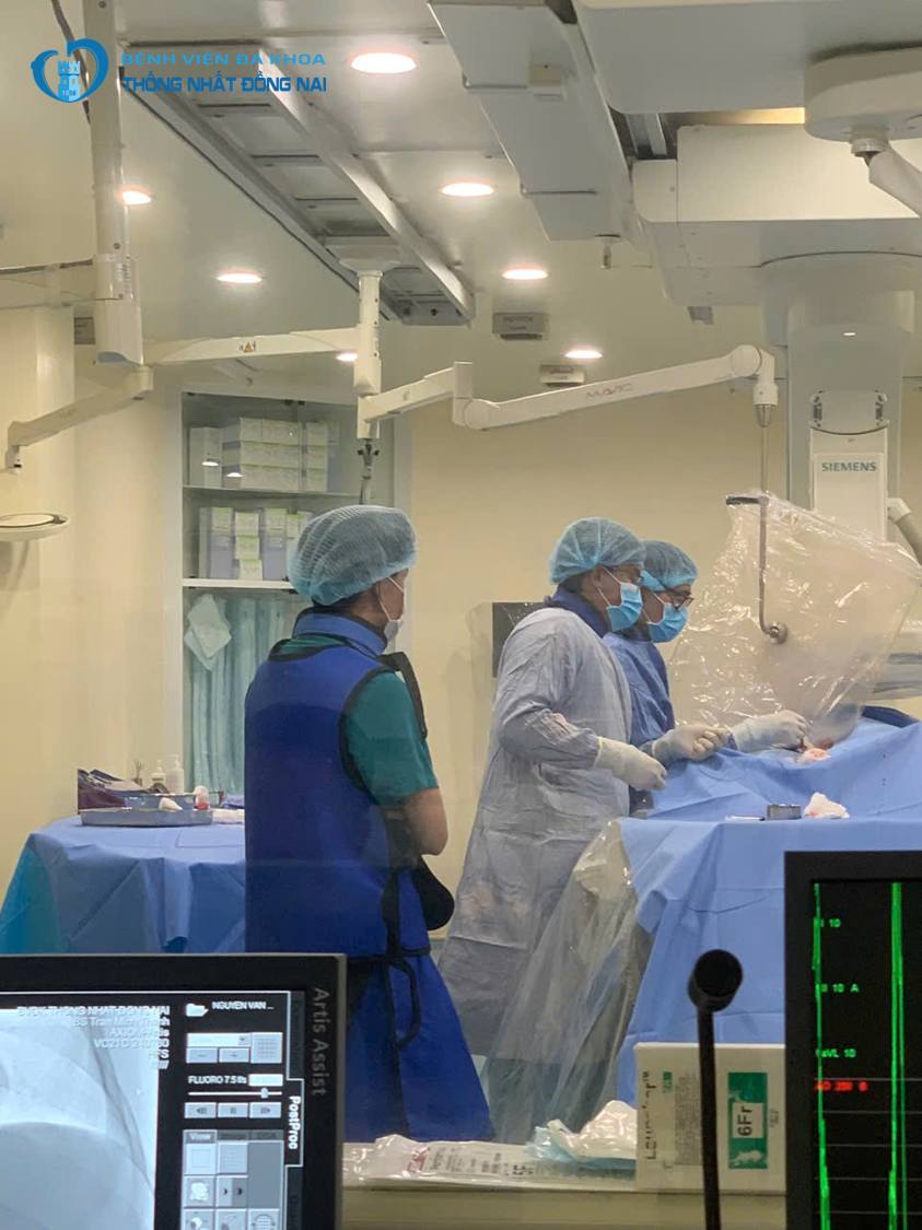 Ê kíp y bác sĩ đang thực hiện kỹ thuật can thiệp mạch máu