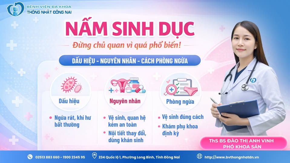 Nấm sinh dục (viêm âm đạo do nấm) là một trong những bệnh lý phụ khoa thường gặp ở phụ nữ, đặc biệt trong độ tuổi sinh sản. Tuy không nguy hiểm ngay lập tức nhưng nếu không điều trị đúng cách, bệnh có thể tái phát nhiều lần và gây ảnh hưởng đến sức khỏe, sinh hoạt và chất lượng cuộc sống.