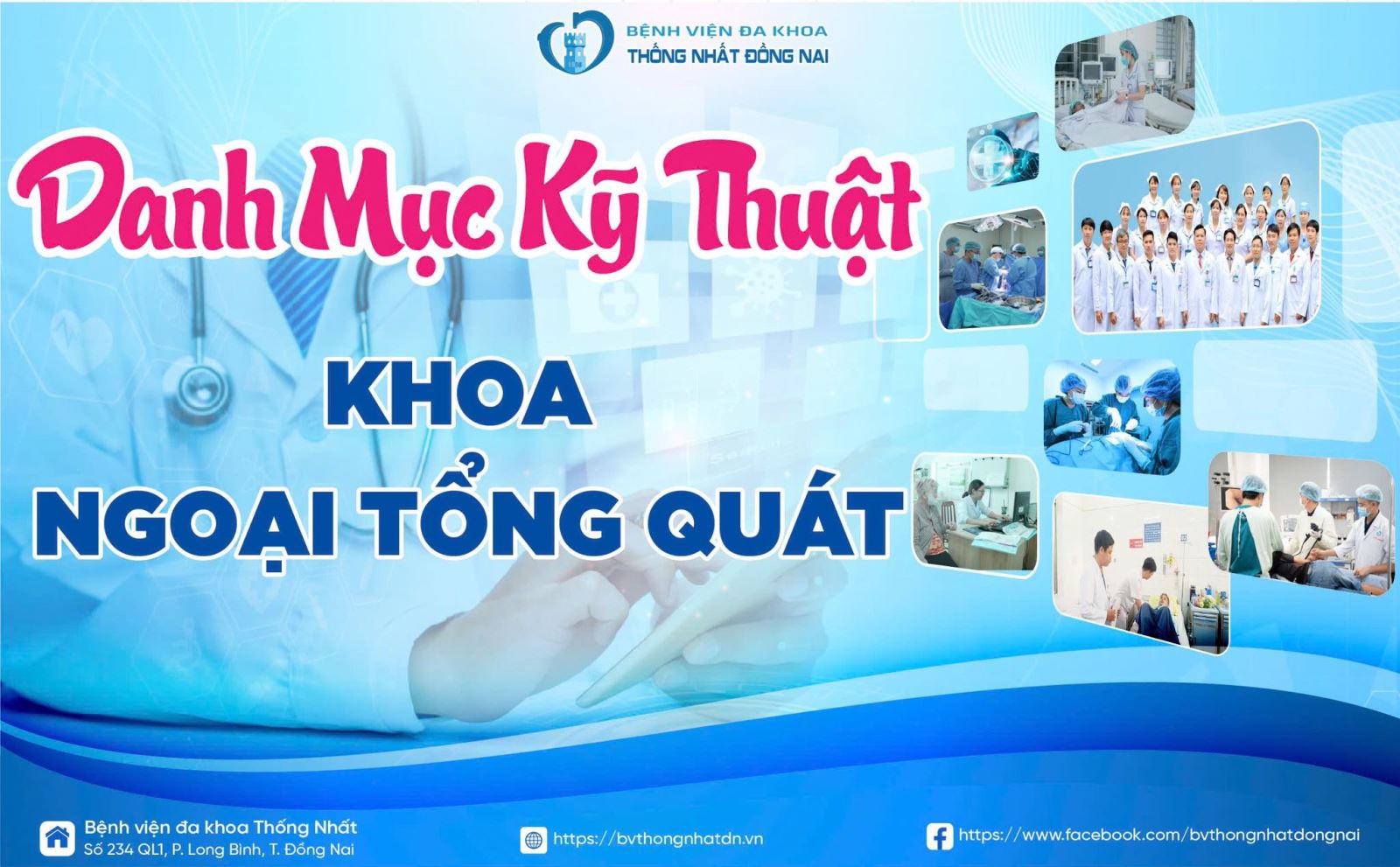 Khoa Ngoại Tổng quát – Bệnh viện Đa khoa Thống Nhất Đồng Nai là đơn vị đầu ngành trong phẫu thuật ổ bụng và các bệnh lý ngoại khoa tiêu hóa, gan mật, tuyến giáp, tuyến vú... Với đội ngũ bác sĩ giàu kinh nghiệm cùng hệ thống trang thiết bị hiện đại, khoa đã làm chủ và triển khai thường quy nhiều kỹ thuật mổ mở và nội soi nâng cao, đáp ứng nhu cầu điều trị chuyên sâu của người bệnh.