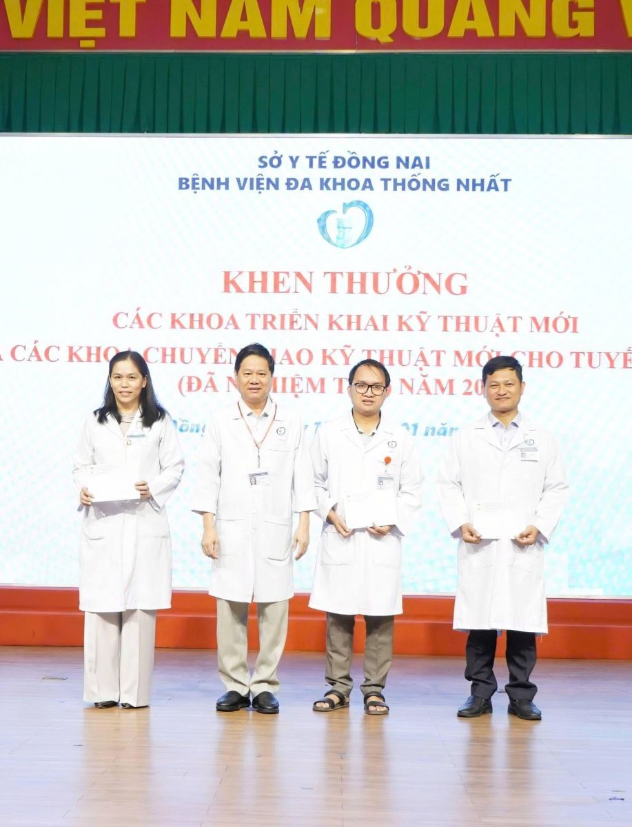 Nhằm ghi nhận và biểu dương những nỗ lực không ngừng trong công tác chuyên môn, góp phần nâng cao chất lượng khám chữa bệnh và đẩy mạnh ứng dụng kỹ thuật y tế tiên tiến, Bệnh viện Đa khoa Thống Nhất Đồng Nai đã tổ chức khen thưởng các tập thể khoa có thành tích triển khai kỹ thuật mới và chuyển giao kỹ thuật cho tuyến dưới trong năm 2025.