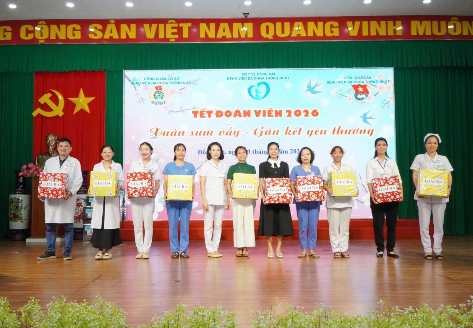 Sáng ngày 09/02/2026, trong không khí hân hoan chào đón Xuân Bính Ngọ 2026, Bệnh viện Đa khoa Thống Nhất Đồng Nai đã tổ chức chương trình bốc thăm may mắn cuối năm với chủ đề “Tết đoàn viên – Xuân sum vầy, gắn kết yêu thương”, mang đến niềm vui ấm áp và rộn ràng cho toàn thể cán bộ, viên chức, người lao động trong bệnh viện.