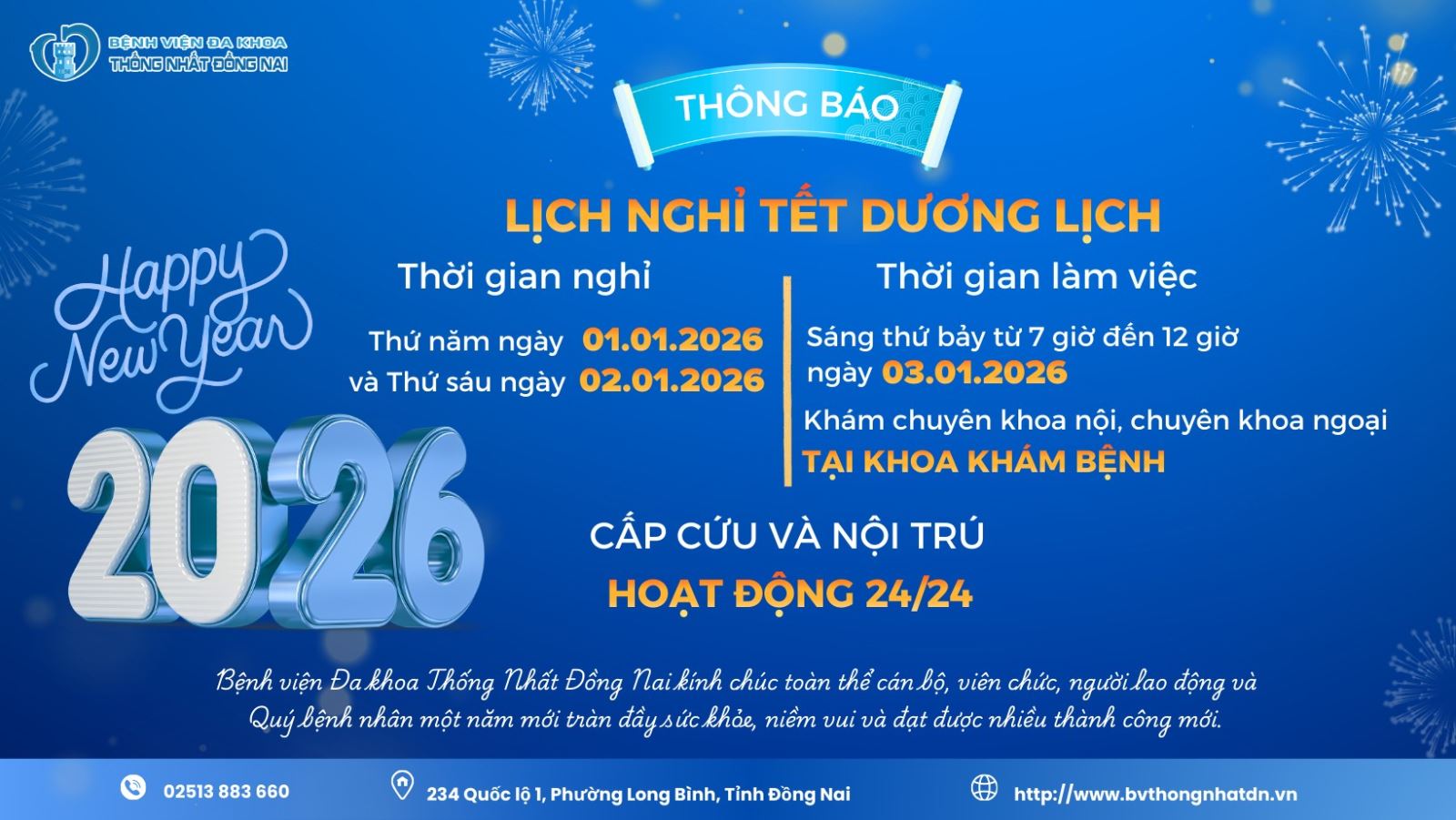 🎉 Bệnh viện Đa khoa Thống Nhất Đồng Nai kính chúc Quý bệnh nhân và gia đình năm mới nhiều sức khỏe – bình an – hạnh phúc!